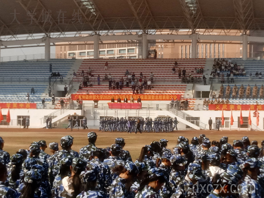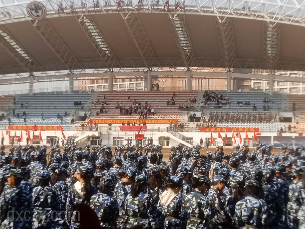 | 广外2025级本科新生军训汇演检阅展示今上午在广外教学区体育场进行 上午10点准时开始 ,内容主要涵盖一个全体分列式行进和三个军事技能科目演练 | ||||||